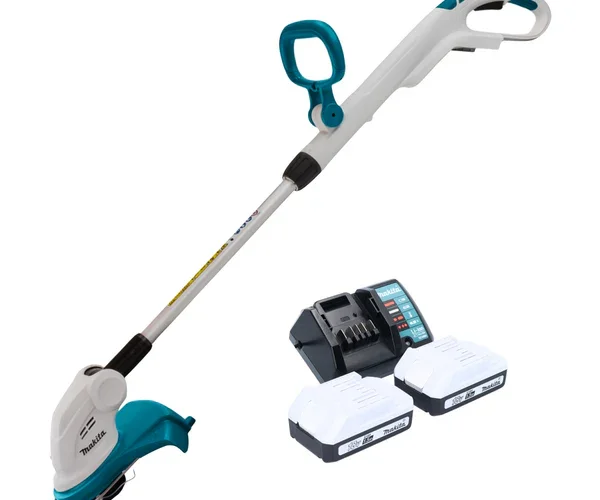 Lieferumfang:- 1x Makita UR 180 DAkku Rasentrimmer- 1x D-Griff- 1x Schutzhaube- 1x Schultergurt- 1x Ersatzfaden- 1x Schutzbrille- 2x Makita BL 1815 G 18 V 1,5 Ah Akku- 1x Makita DC 18 WA LadegerätProduktbeschreibung:Der UR 180 Dist einhandlicher Akku Rasentrimmer von Makita. Der Aluminiumschaft ist sehr stabil und s