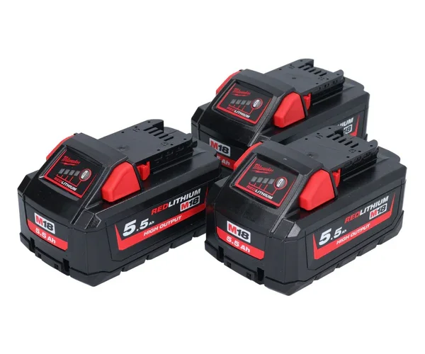 Milwaukee M18 HB 5,5 Akku Set 3x 18 V 5,5 Ah / 5500 mAh Li-Ion High Output ( 3x 4932464712 ) mit Ladestandsanzeige Abverkauf