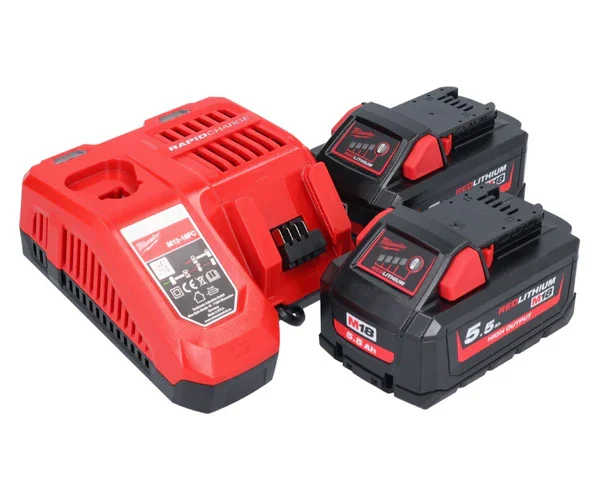 Milwaukee M18 NRG-552 Akku Starter Set High Output 18 V + 2x Akku 5,5 Ah ( 2x 4932464712 ) + M12-18 FC Ladegerät ( 4932451079 ) Knallerangebot