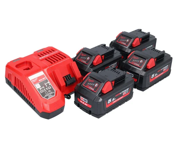 Milwaukee M18 NRG-554 Akku Starter Set High Output 18 V + 4x Akku 5,5 Ah ( 4x 4932464712 ) + M12-18 FC Ladegerät ( 4932451079 ) Versand Am Gleichen Tag
