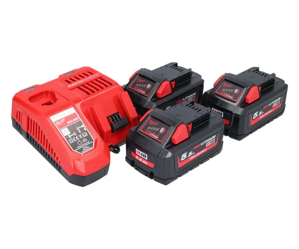 Lieferumfang:- 3x Milwaukee M18 HB 5,5 Akku 18 V 5,5 AhLi-Ion High Output ( 4932464712 )- 1x Milwaukee M12-18 FC Ladegerät( 4932451079 )Produktbeschreibung:Der Milwaukee M18 High Output 5,5Ah kann bis zu 50% mehr Power liefern als andere M18 Akkus. DerAkku verfügt über die REDLINK-Elektronik, die für eine optimale