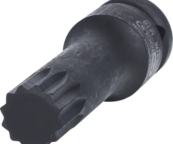 Produktbeschreibung:1/2″ Kraft-Bit-Stecknuss XZN,lang,M18 · Kraft-Bit-Stecknuss für Vielzahn(XZN®)-Schrauben, langMerkmale: Vielzahn (XZN®) Innenvierkant nach DIN 3121 / ISO 1174 lange Ausführung für Maschinenbetätigung phosphatiert Chrom-Molybdän Technische Daten: – Durchmesser D: 25.0 mm – Gesamtlänge L in mm: 75.0 m