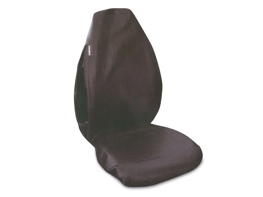 Universal-Schonbezug aus schwarzem Kunstleder, passend für serienmäßige Normsitze (Fahrer/Beifahrer). Nicht für Fahrzeuge mit Seitenairbag geeignet.
