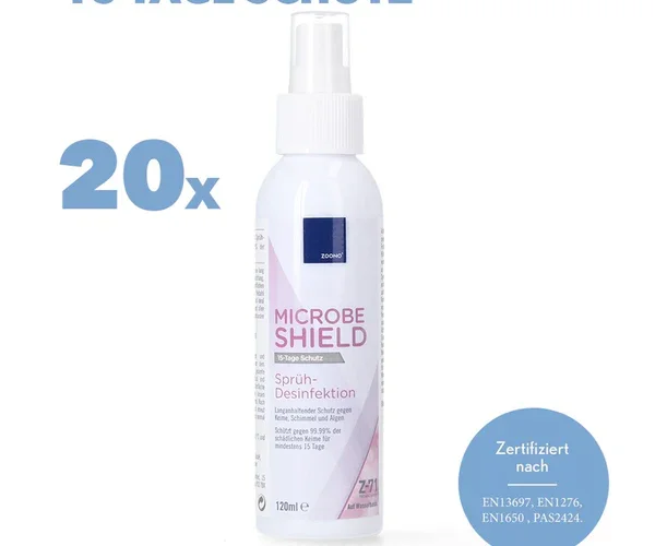 Zoono Z-71 Micobe Shield 20x Flächendesinfektionsmittel 120 ml Schutz für mind. 15 Tage auf Oberflächen gegen 99,99 % aller Keime ( Zertifiziert nach PAS 2424 / EN13697 / EN1276 / EN1650 ) Zertifiziert